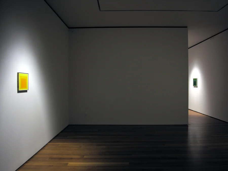 Andrew Grassie began a series of “recordings” as a way of breaking an impasse in his own art-making, an impasse due in part to believing in painting at a time when not many did. Leaving Saint Martin’s and the Royal College of Art, facing the void, he discovered an end-run to the tyranny of content by copying his own earlier work at 1:1, in oil, stroke by stroke. In making forgeries of his own paintings, the content of his painting (or at least its importance) instantly evaporated and only the practice of painting itself remained. This way of working evolved, and soon he was painting droll recordings of the spaces and places of the art world itself—gallery offices, storage areas, empty exhibition spaces, and fictional installations. Meaning and the responsibility implied by content were deferred and the pogroms of art school criticism rendered flaccid, Greenberg and his progeny included. Yet even while it was a cleverly discursive tactic, Grassie nevertheless remained bound to Albers, Opalka, Morandi, and Kawara in a shared faith in a practice of meditative repetition.